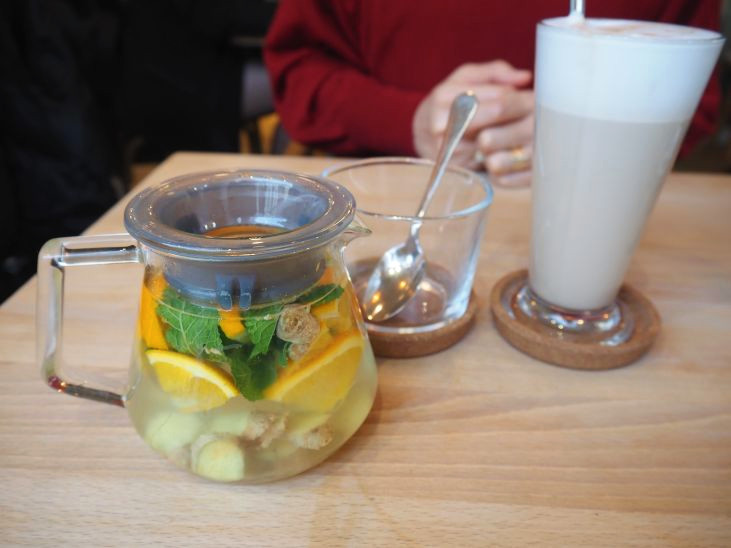自分はラテマキアート、奥さんはオレンジジンジャーティーで。