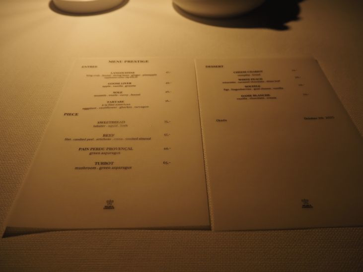 いつもコース料理を注文するけど、この日は奥さんの調子があまりよくなかったので