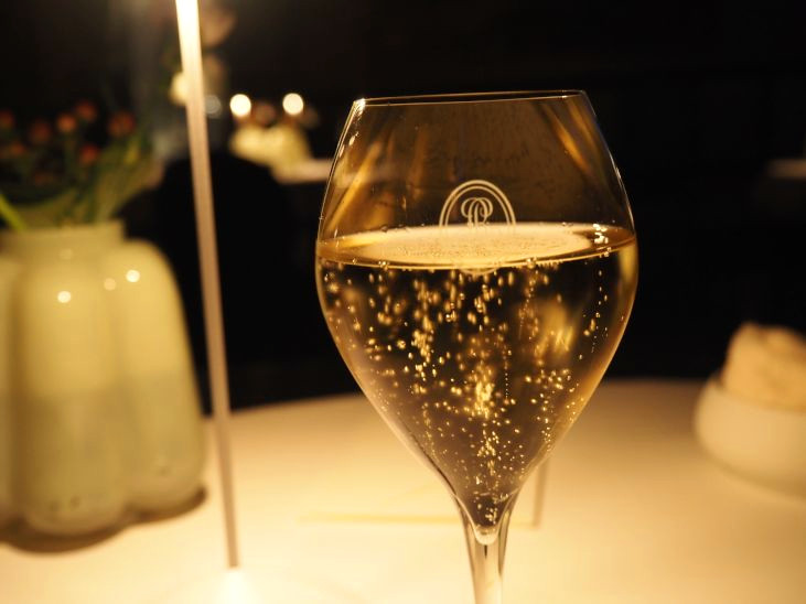僕はグラスのシャンパン、奥さんは体調不良なのでコーラ。