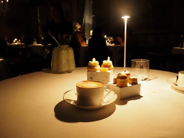 「食後のコーヒーはコチラにお持ちしますか?それとも洞窟内で飲まれますか?」