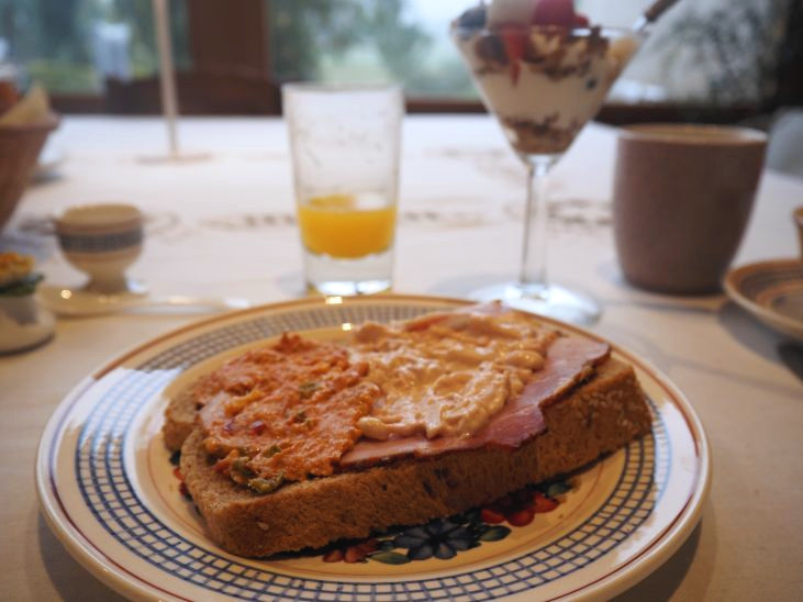 大きな窓から見える朝の景色を眺めながらの朝食がステキやった。