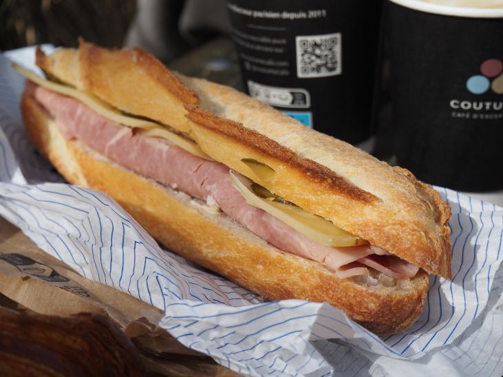 到着初日なのでバケットサンドはハム+チーズ+コルニション、スタンダードな物を選んだ。