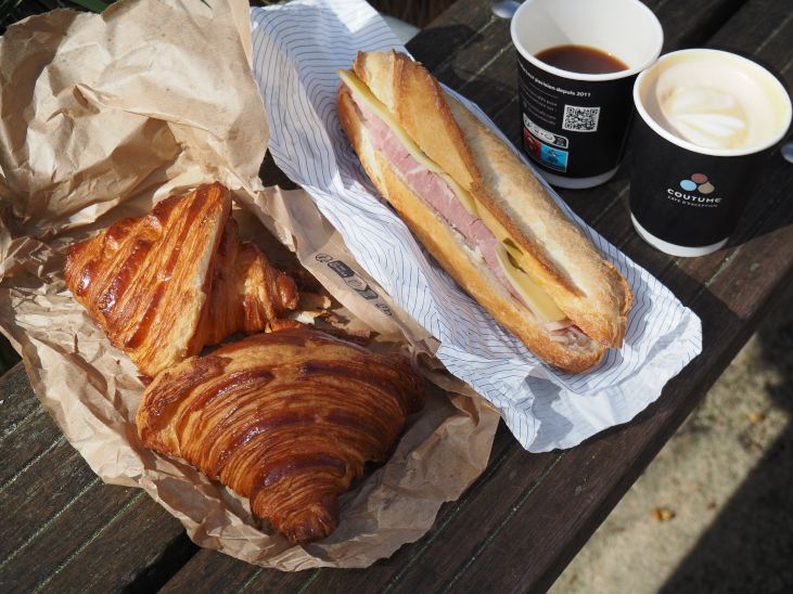 パン屋さんの近くのコーヒー屋さんでカフェオレを購入し