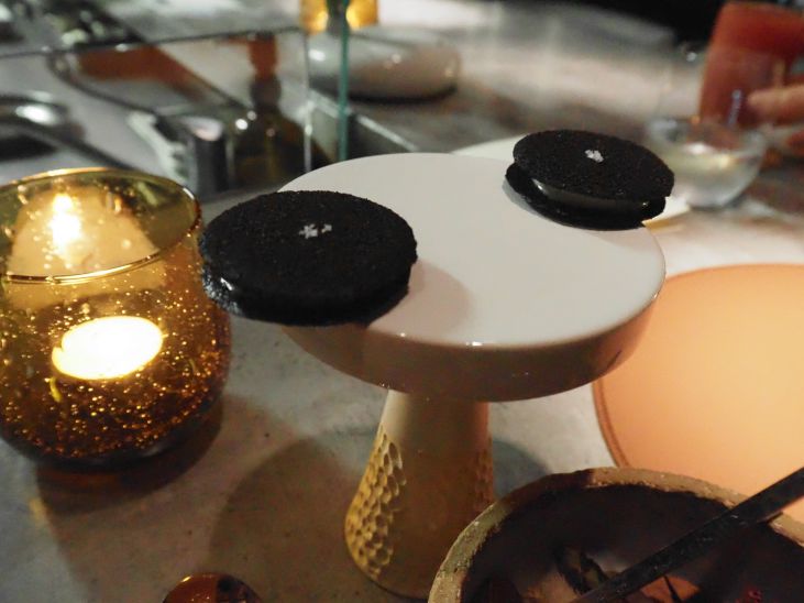 黒いサンフラワーシードのスモークしたクリームチーズ入りクッキー。