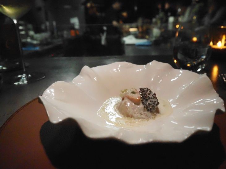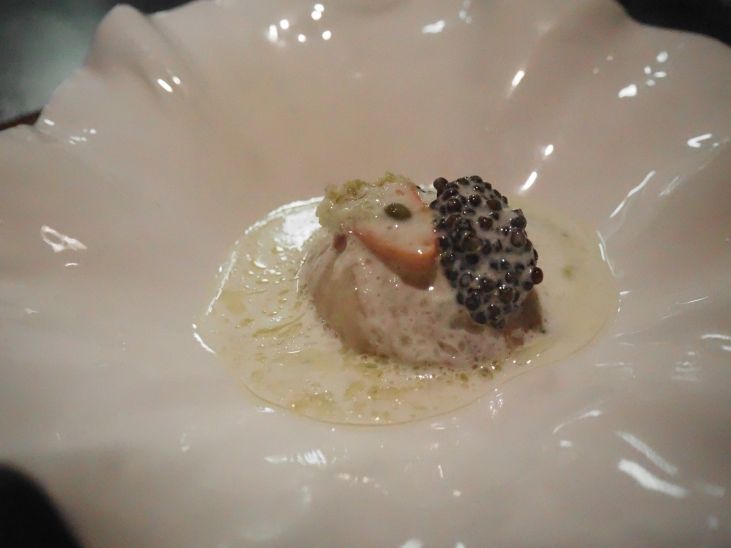生ホタテ+キャビアな一品。