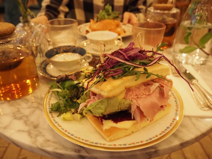 自分はトリュフ入りハム+チーズ+卵+マヨなんかが入ったフワフワパンのクラブサンドイッチ。