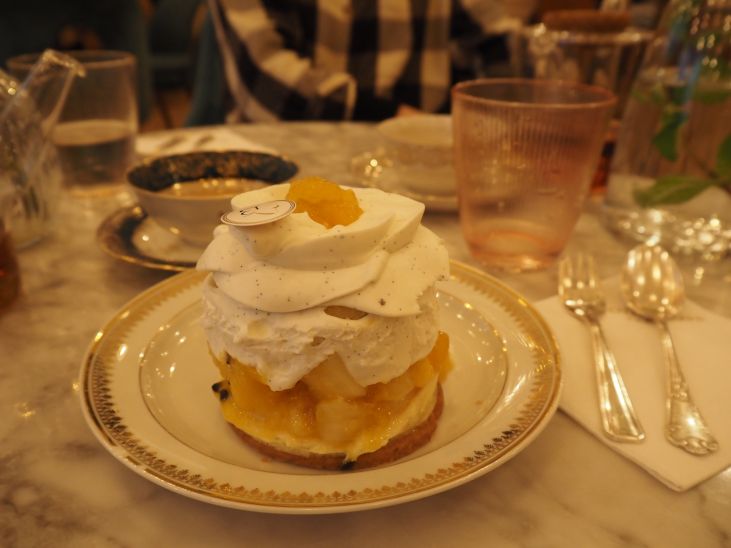 食後にパッションフルーツ、パイナップル、マダガスカルバニラのケーキも。