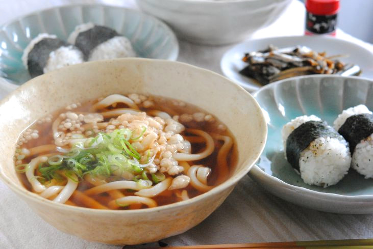 イリコと鰹節のW出汁かけうどんふりかけオムスビ