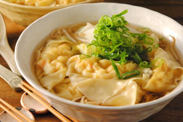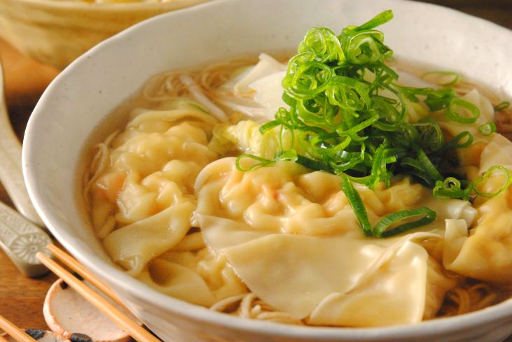 - ワンタンの皮に具をタップリ包んで茹でラーメン等に乗っけて食べる