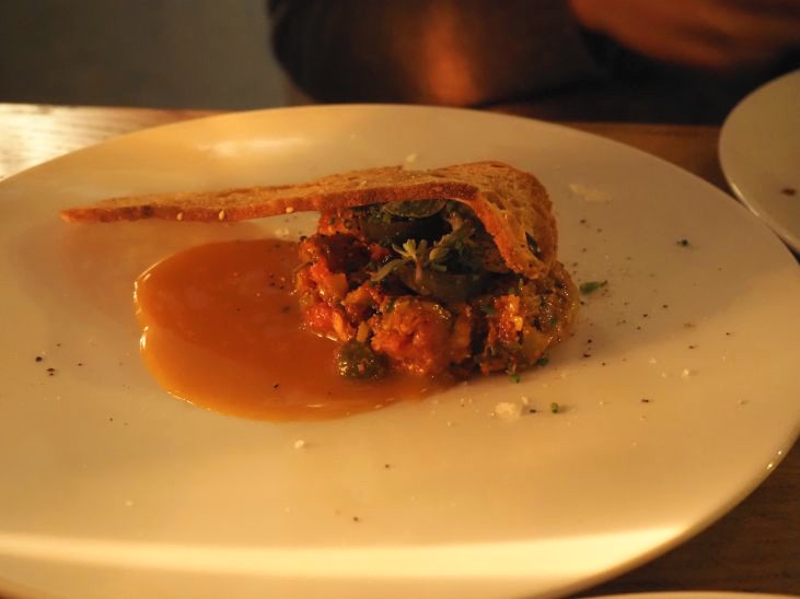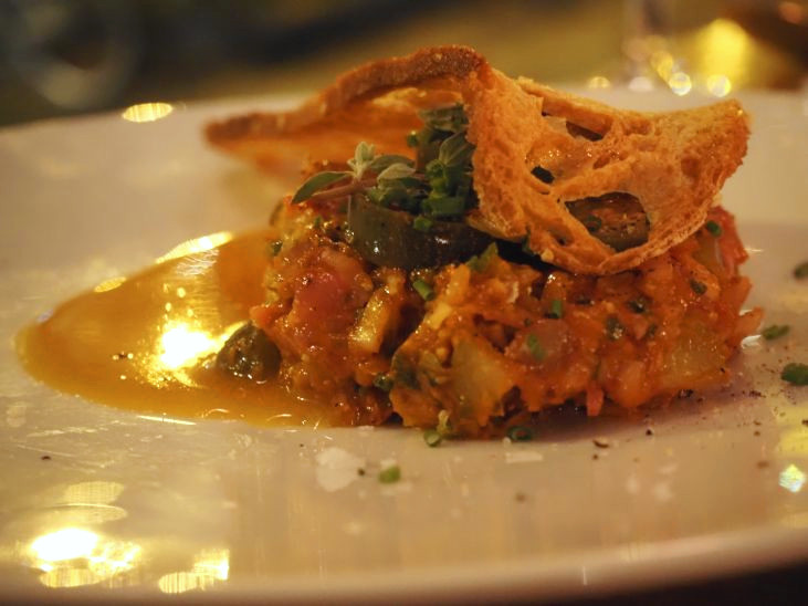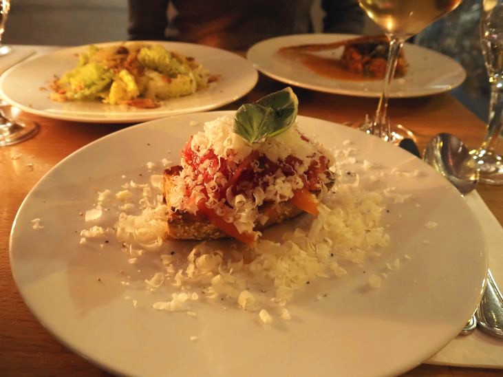 ブルスケッタ、シーザーサラダの小、あと牛肉のタルタルやな。