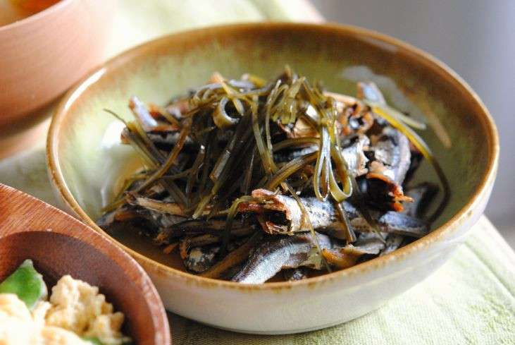 イリコと昆布の出し殻に酢醤油をかけただけの物。
