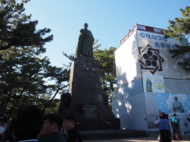 坂本龍馬の横顔が近くで見えるって事で顔の近くまで上れる様に足場が組まれて