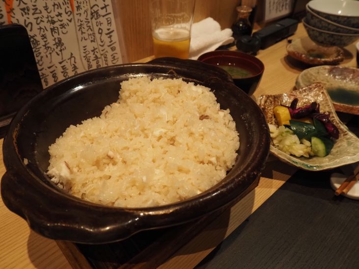 土鍋で炊かれた鯛めしは薄味で美味しいわ。