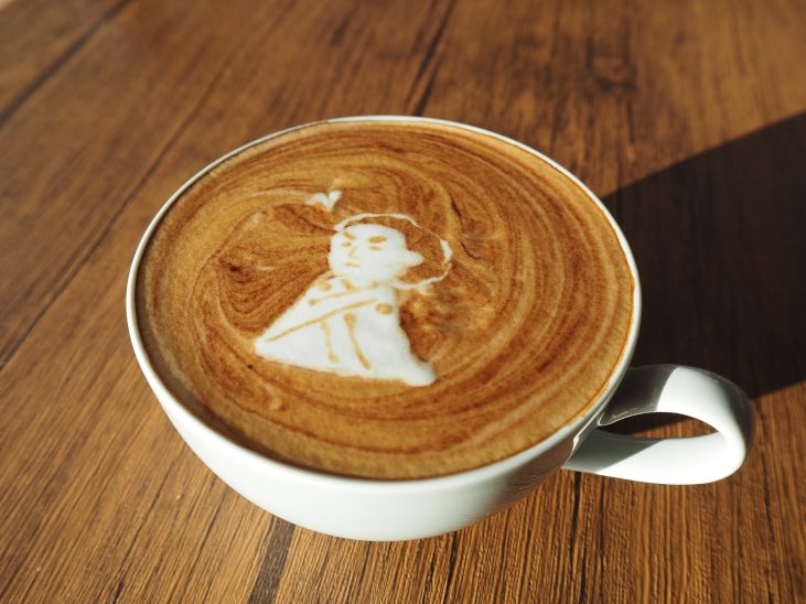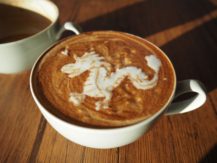 ラテアートむっちゃ上手やわ、奥さんはドラゴンで注文。